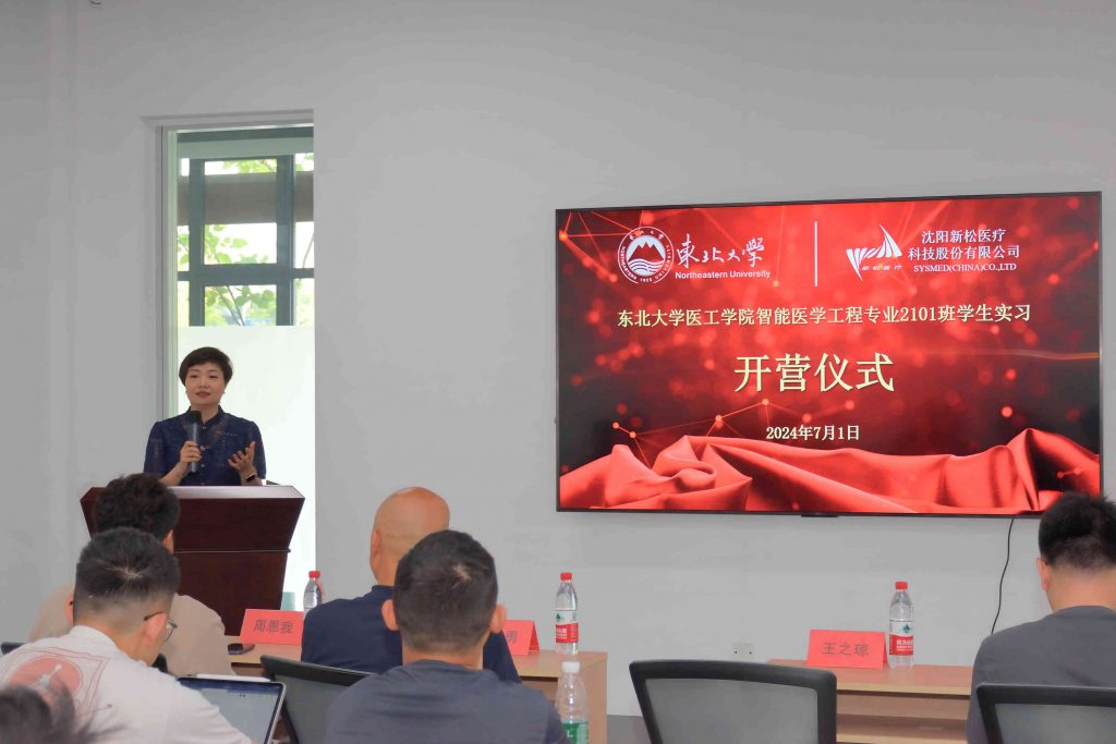 東北大學(xué)醫(yī)工學(xué)院院長助理王之瓊教授對新松醫(yī)療公司在過去2年為校企合作做出的努力和取得的成效表示認(rèn)可和感謝,王教授介紹了醫(yī)工學(xué)院的發(fā)展歷程、辦學(xué)規(guī)模、專業(yè)建設(shè)等情況,從人才培養(yǎng)和就業(yè)需求出發(fā),結(jié)合專業(yè)發(fā)展方向向大家指出了實習(xí)實訓(xùn)的重要性。她強調(diào),實習(xí)實訓(xùn)是教學(xué)環(huán)節(jié)的重要內(nèi)容,對于提高大家的社會適應(yīng)能力、順利擇業(yè)就業(yè)有著重要的意義。希望同學(xué)們能夠珍惜實習(xí)實訓(xùn)的機會,明確目標(biāo),在實習(xí)中消化并運用專業(yè)理論,結(jié)合所學(xué)專業(yè)知識多思考、多記錄、多動手、多動腦,為企業(yè)貢獻(xiàn)自己的智慧,為自己的未來發(fā)展打好、打牢基礎(chǔ)。