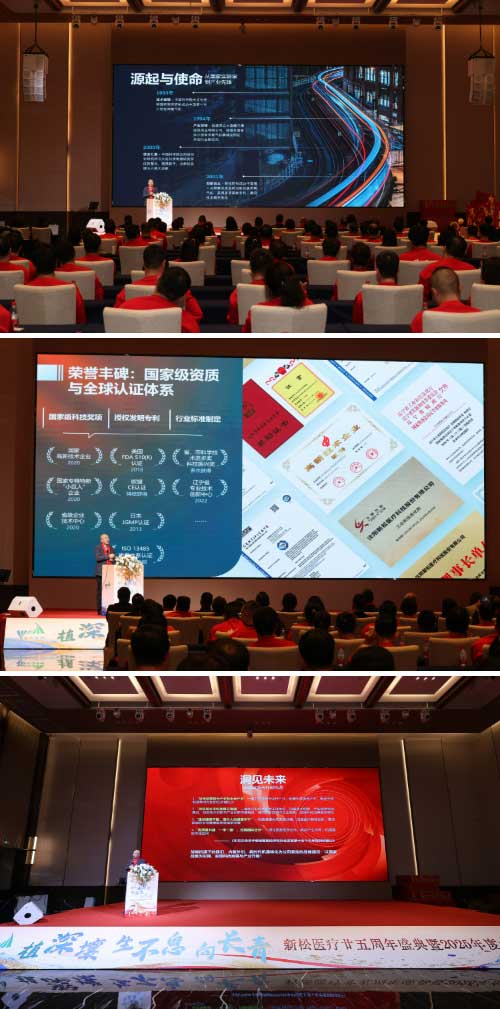 大會在震撼人心的公司發(fā)展紀實短片中啟幕。一幅幅承載記憶的畫面,串聯(lián)起新松醫(yī)療從中國科學(xué)院實驗室萌芽,到產(chǎn)業(yè)化扎根,再到全球市場開枝散葉的奮斗史詩。隨后,全場肅立高唱國歌,昂揚的旋律凝聚起全體新松醫(yī)療人向新而行的意志與力量。